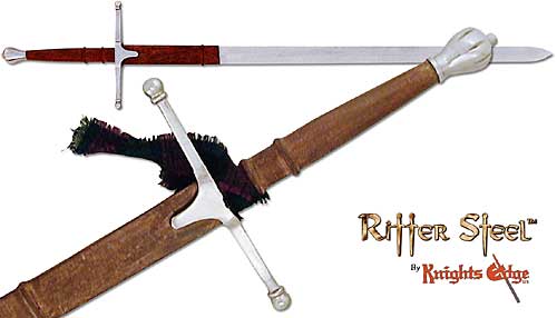 The earliest Scottish clansmen were strong and fearless. They wielded large swords with a simple yet powerful design. One of these legends was a man named William Wallace, who could have carried an early Scottish claymore sword just as this in battle. The claymore sword started with this early design and predates the very recognizable clover design of claymores later in history. For the brave of heart, the blade is 1-3/4" wide and 42-1/2" long. Overall length 56-1/4". This sword was depicted in the movie about Sir William Wallace - Braveheart. Item #2014
