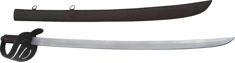 Pirate Cutlass - "Captain's Choice"! This dashing Ritter Steel pirate cutlass sword is a real bounty to behold! Created with a stylish blackened steel guard (to protect the finish from harsh sea air) and a hand-forged carbon steel blade this cutlass sword is worth "walking the plank" for and is the perfect pirates companion for a "Night Raid". Sword comes complete with sheath. Blade: 1-1/8"W x 27"L. Overall length 33". Item #2050