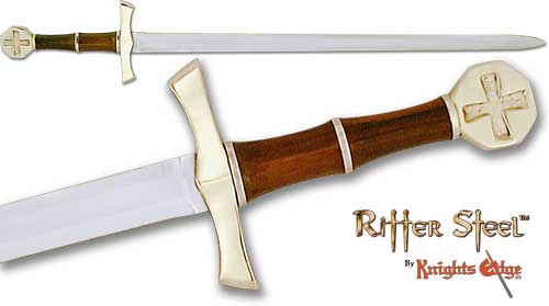 A very swift and well constructed 27" blade is hand forged from high carbon steel and tempered over hot coals, as was done back in the middle ages. The stylish guard is made of hand-cast solid brass as is the beautiful octagon pommel depicting the symbol of God: The Crusaders Cross!